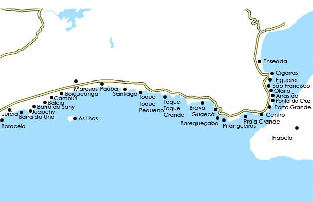 - A partir deste ponto, basta seguir por esta rodovia (Rio-Santos), passando por praias como Riviera de São Lourenço, Boracéia, Barra do Sahy, Juquehy, Camburi e logo em seguida, já estará em Boiçucanga.